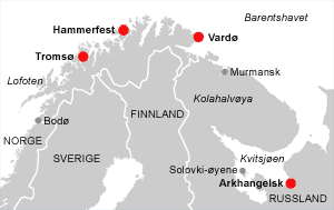 The main centre of the Pomor Trade in Norway was Vardø, which is located close to the Russian border. The harbour in Vardø could at times have over 100 Russian vessels moored simultaneously, and the town had a Russian consulate.