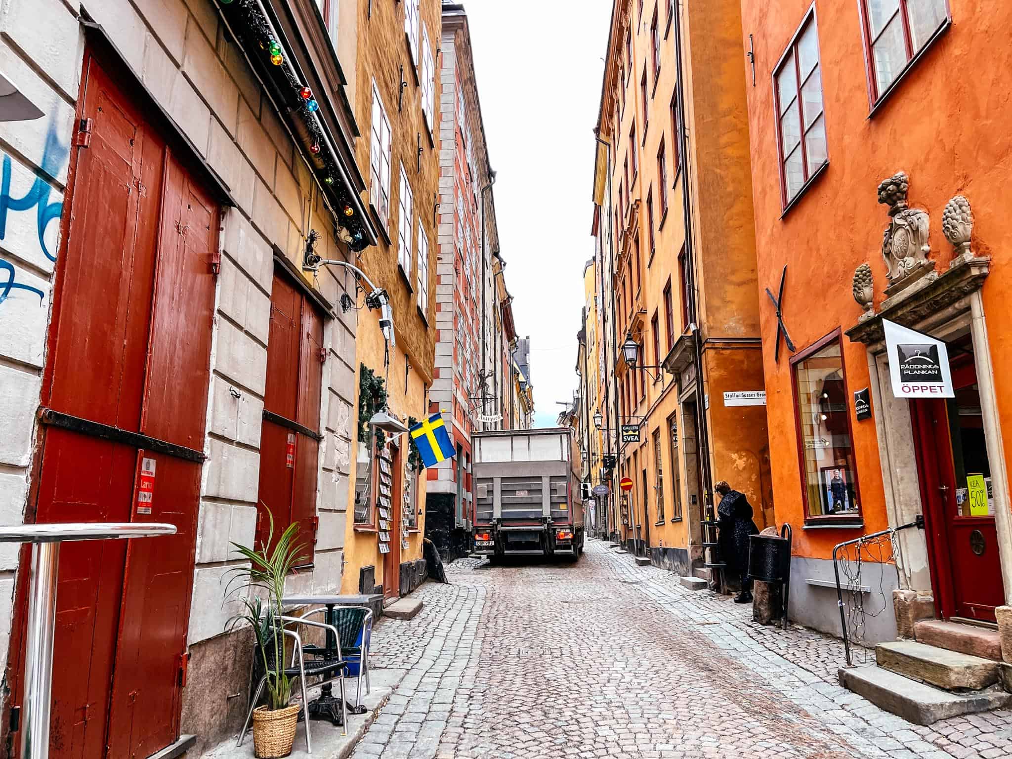 This is the narrowest street in Stockholm. It’s 90cm (36 inches) wide at its narrowest point and as the buildings tilt with age, it’s getting incrementally narrower each year. It’s also the only place in Stockholm’s old town where you will see graffiti.