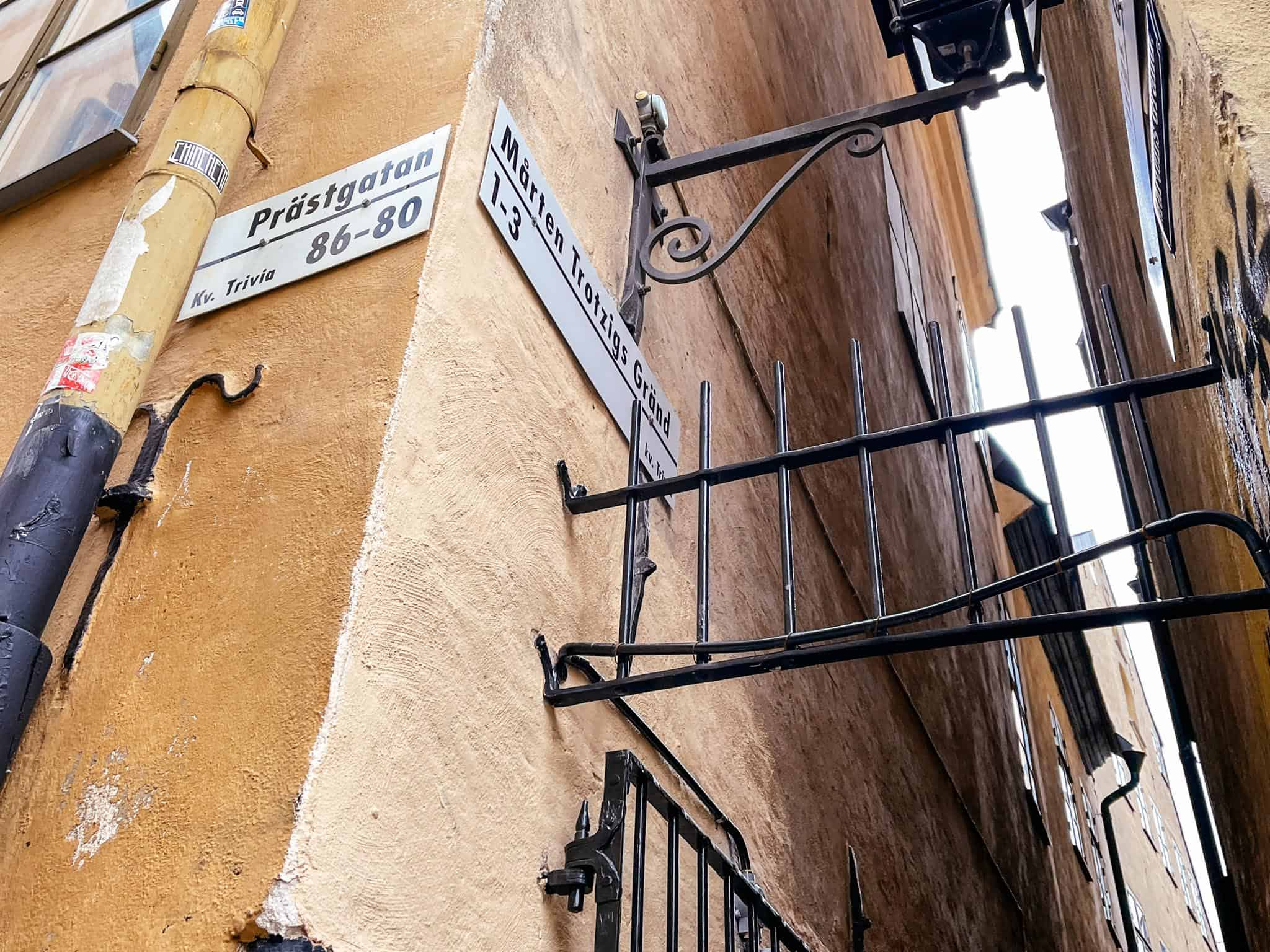 The name isn’t very old; it was named in 1949 after Marten Traubtzig (Swedishised to Mårten Trotzig), who was born in Germany in 1559. It’s not known why he came to Stockholm, but it was likely for trading. He traded in iron and copper and eventually became a Swedish citizen. In 1597 he bought a small house on the eastern part of the alley and then in 1599 he bought another house in the alley. During his life, he became perhaps the richest merchant and citizen in Stockholm and had many children.