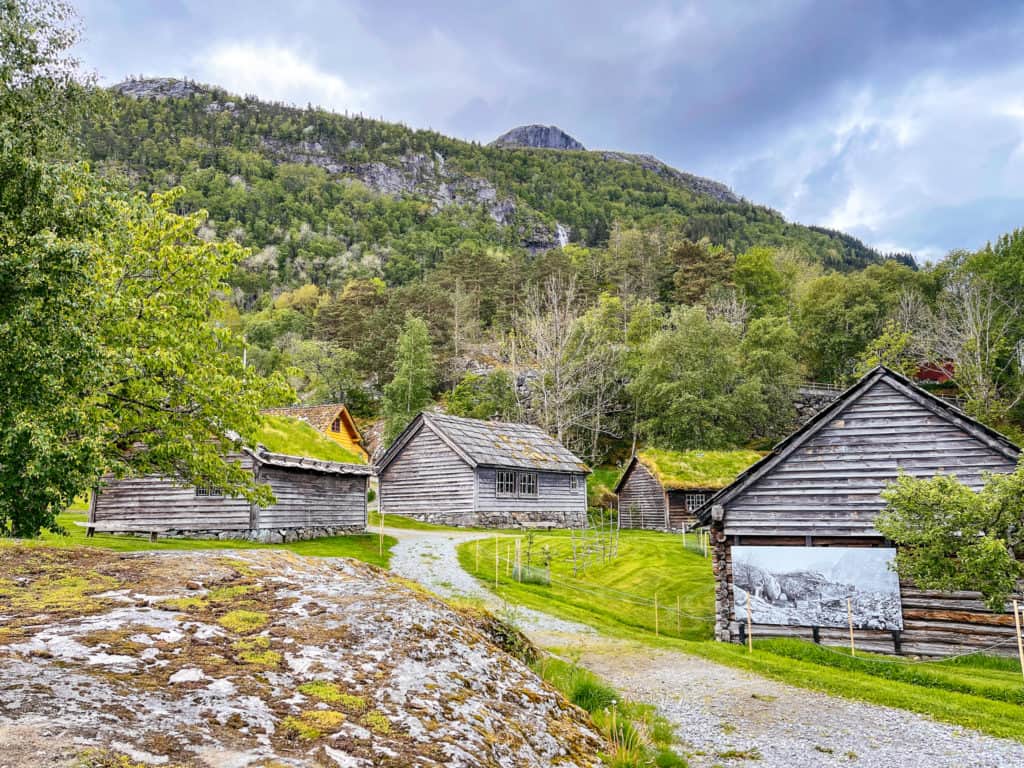 Down by the water are some well-preserved boathouses with traditional Hardanger boats.