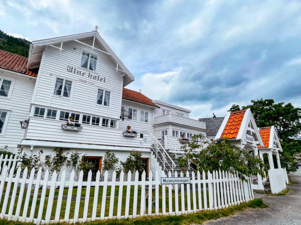 If you want to stay somewhere a little more budget friendly, try the Hardanger Gjestegård. This historic guesthouse dates from 1898 and feels like a museum inside with its wooden panels and old furniture. It’s located about 10km out of Utne.