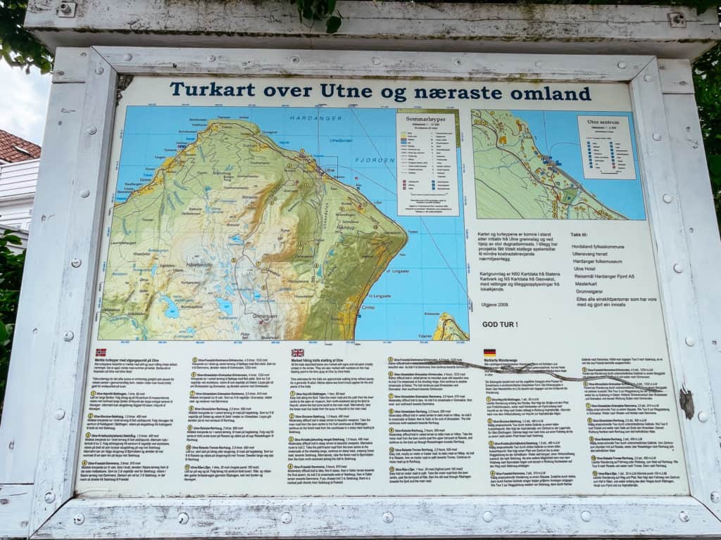 Utne is surrounded by short and long hikes. Close to the ferry pier you’ll find a map of all the hikes in the area.