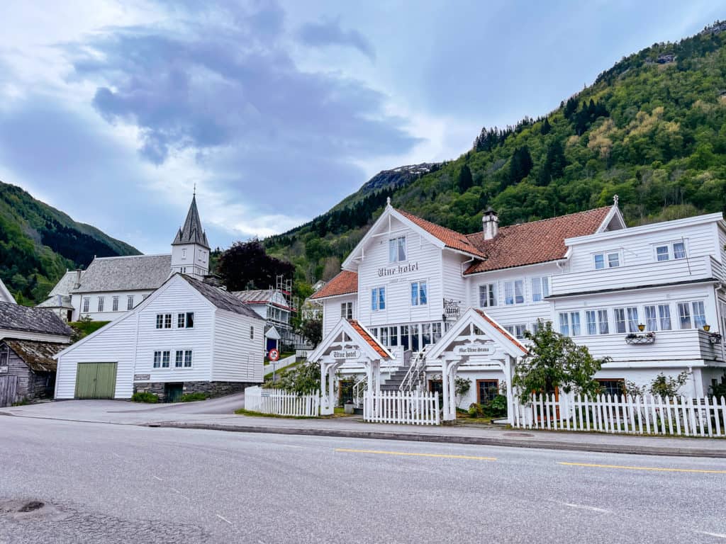 The white wooden church just above the hotel is not a historic church; it was built in the late 19th century after the locals wanted to stop taking the boat across to Kinsarvik Church. They had to raise the money to build the church themselves, so it did take some time. The church seats about 300 people. It’s just a few minutes walk from the ferry pier.