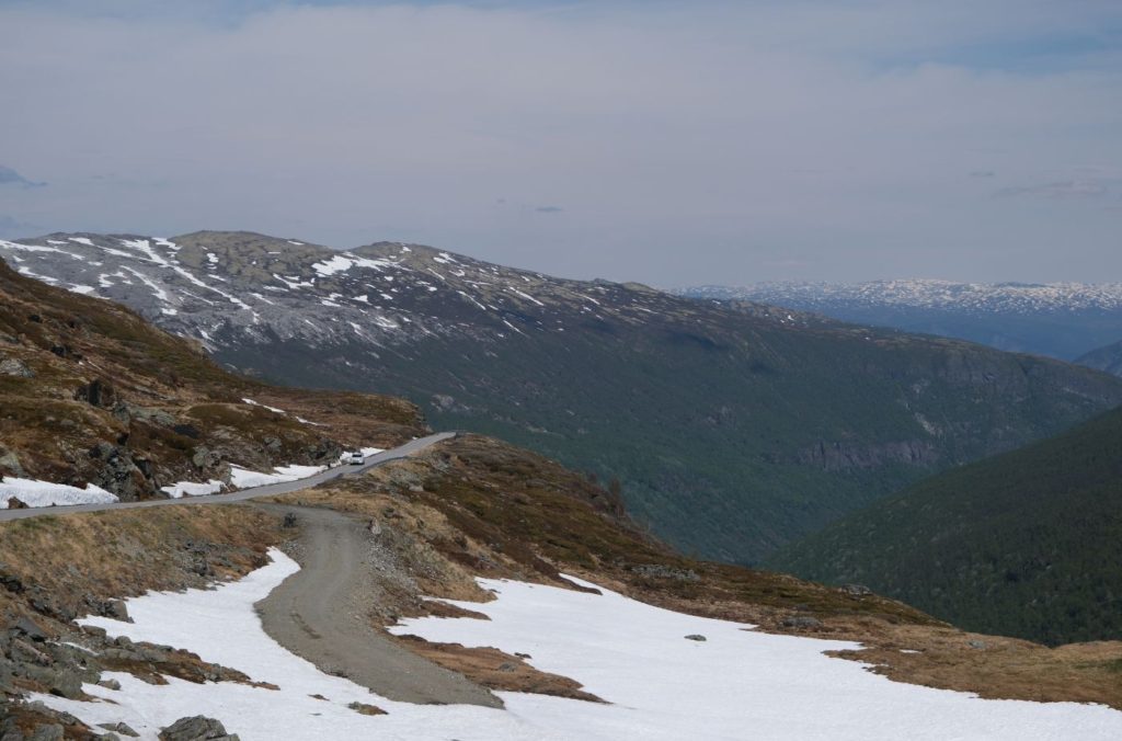 Aurlandsfjellet was completed in 1967, and it used to be the main road between the two towns. Since 2000, however, the main highway E16 has gone through the new Lærdal Tunnel instead. The Lærdal Tunnel is 24.5km long, making it one of the longest tunnels in the world. You can take the tunnel, I mean it is quicker, but the Aurlandsfjellet Tourist Road is much more fun!