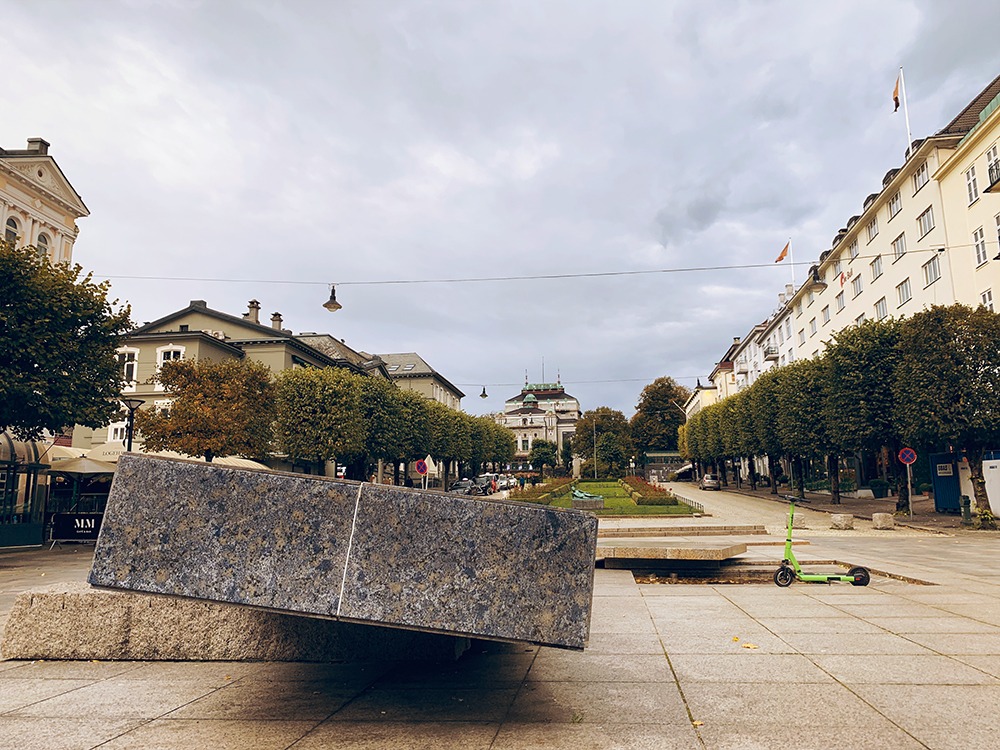 Here we are at Byparken! This park was laid out in the early 20th century. Before then, this lake connected to the fjord and many people used to dock their boats in this area. I cover this topic more on my Lungegård Lake walking tour. Byparken is used for many festivals and markets, including our Christmas Market and Food Market. On Norway’s National Day, 17 May, this is where the festivities are.