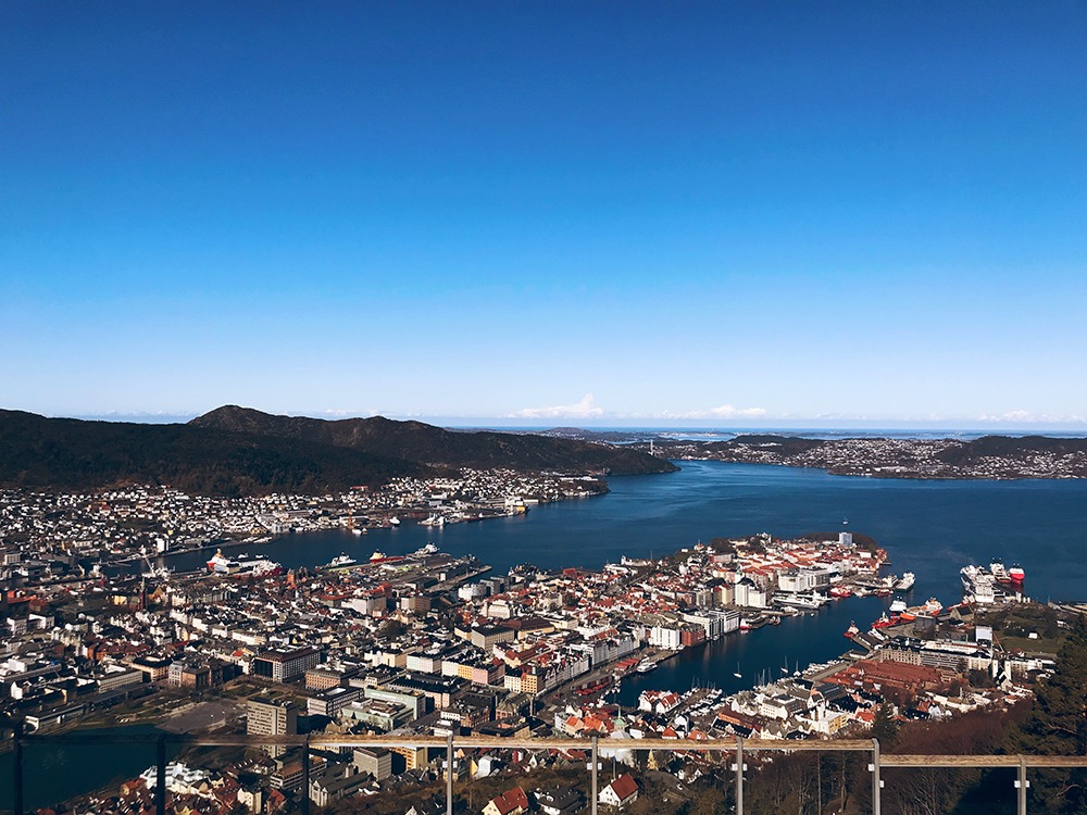 The Fløibanen is a funicular that will take you to the top of Mt. Fløyen, one of the seven mountains that surrounds Bergen city centre. The mountain is 320m (1000ft) high and has gorgeous views from the top. Most importantly, during busy times of the day, the funicular runs continuously and takes 5-8 minutes to reach the top. You can download an app to buy tickets and see the schedule or buy on at the ticket counter.