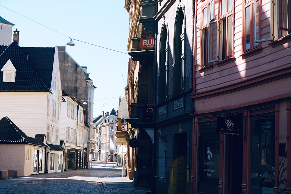 This wide street is called an ‘allmenningen’. This is a purposely built street from the 16th century designed to prevent fire spreading rapidly between buildings – you’ll notice many streets in Bergen end in the word ‘allmenningen’.