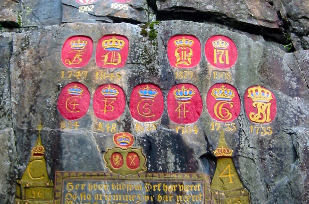 Crowns in Håvet is a site where Norwegian royal monograms have been carved into the mountains to mark royal visits to the city. The first monogram is of King Christian IV, while the most recent is Harald V.