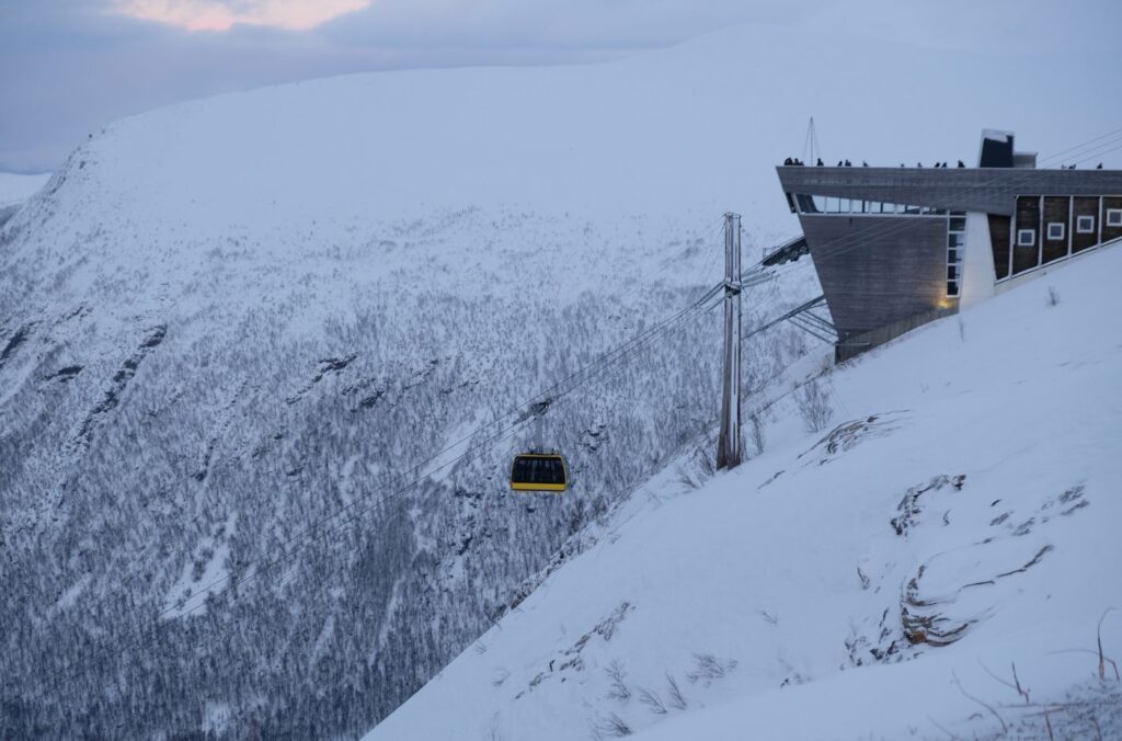The Fjellheisen Cable Car makes the mountain of Tromsø accessible for anyone. Ride up to Storsteinen, at 421 metres (1380ft) above sea level. The two cable cars are called Selen and Bjørnen. At the top you have panoramic views of Tromsø city and the islands and mountains surrounding it. There are several hiking trails to follow around the mountaintop. Both Steinbøhytta and Fløya are moderate 1 hour hikes starting from the top station. There is a café at the top.