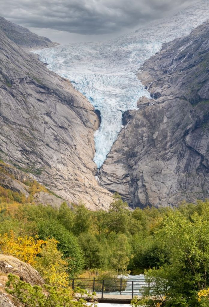 Olden is a small village with around 500 people. This is where the larger cruise ships dock that are heading to Loen or the Jostedalsbreen National Park. In 2019, 102 cruise ships came here. The Briksdalsbreen glacier is a popular hiking destination and is located about 25km (16 mi) from Olden.