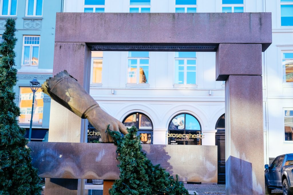 The statue in the middle of the square is called Christian IV’s glove and is by Wenche Gulbransen. It’s supposed to represent Christian’s decision to move the city here.