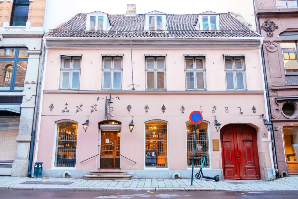 You’ve now made it to the north of Kvadraturen. On your right is a white building – this is Prinsens gate 18. It is the oldest house on Prinsens gate. It is from 1640 and was originally one floor but was later extended to two floors. Andreas Tofte, who was Oslo’s first mayor (1837-38), lived and ran a business here from 1824 to 1848.