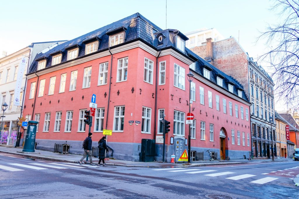 At the corner of Rådhusgata and Dronningens gate is a beautiful red home. It is Garmanngarden, one of the city’s oldest standing buildings. Parts of the building are from 1622 (before Oslo burned in 1624), though most of the building is from 1625-1630. The anchors on the building have the date 1647, which is probably when the building got its current appearance. For its first 100 hours, the building was the residence of important men in Oslo, such as Land Commissioner Johan Garmann (where the property got its name from) and Governor Just Høeg.