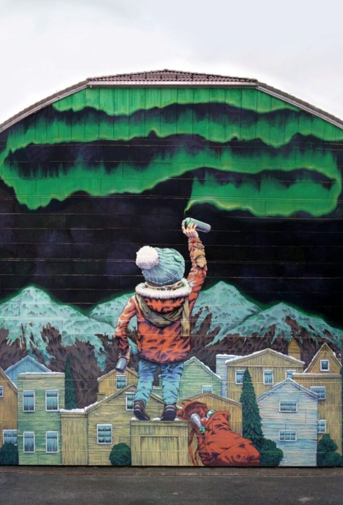 Street art in Bodø has gained significant attention in recent years, positioning the city as a hub for vibrant public art in Scandinavia. Bodø’s street art scene has gained international acclaim, attracting tourists and art enthusiasts. The city was named the European Capital of Culture in 2024, further cementing its role as a cultural hotspot, with street art contributing significantly to this achievement.