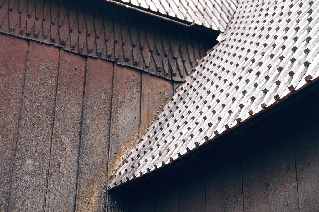 The original stave church used to have a hallway around the exterior of the church. Marks from it are still visible in the east gable.