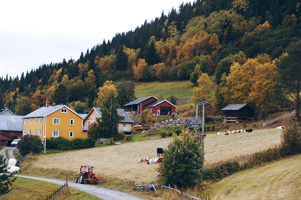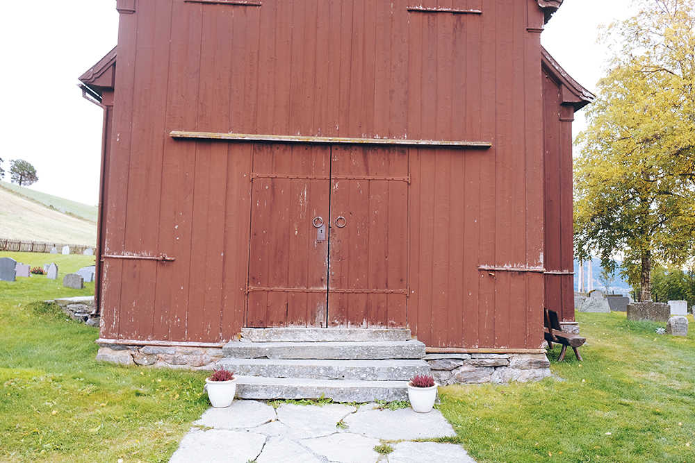 The church has a carved gate from the Middle Ages, but the cemetery around the church is not that old. Hegge Stave Church is located some ways up the hill and stands by the farm Presthegge. You’ll see cows and tractors across the street!