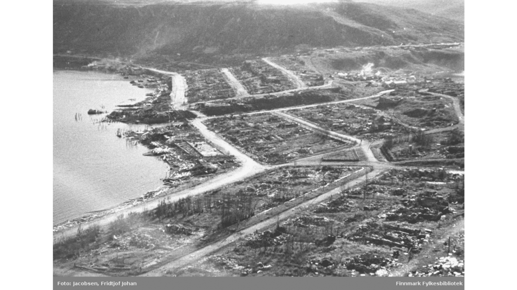 The population was forcibly evacuated by the Germans in the autumn of 1944 after the Soviet offensive was pushing into Norway. Hammerfest was then looted and burned to the ground by the Germans, and by 10 February 1945 the town was completely destroyed.