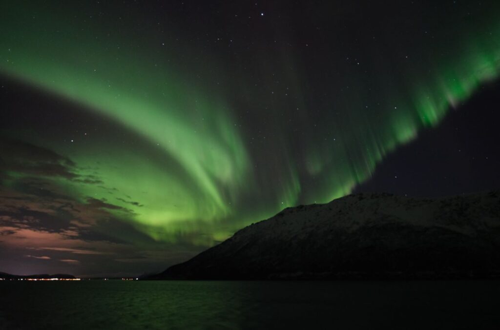 Northern lights cruises are another good way to see the lights. These cruises take you far out of the city lights and will provide stunning backdrops with mountains and fjords as you take photographs of northern lights.