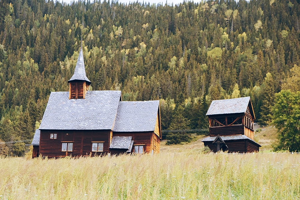 If you are driving on the E16 between Bergen and Oslo, Lomen Stave Church is by the highway. Located in the historic Valdres Valley, this church has stood here since the 12th century. In the summer months, it is open to the public, where you can go inside and marvel up-close at the medieval detailing. It’s not as famous or as ‘stave-y’ as some other churches, I know, but it’s located in a gorgeous place and bears many similarities to churches like Borgund. Here’s some info about Lomen Stave Church.