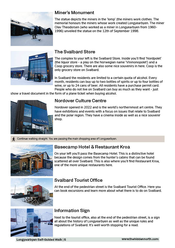 Printable version of the Longyearbyen Self-Guided Walking Tour includes: