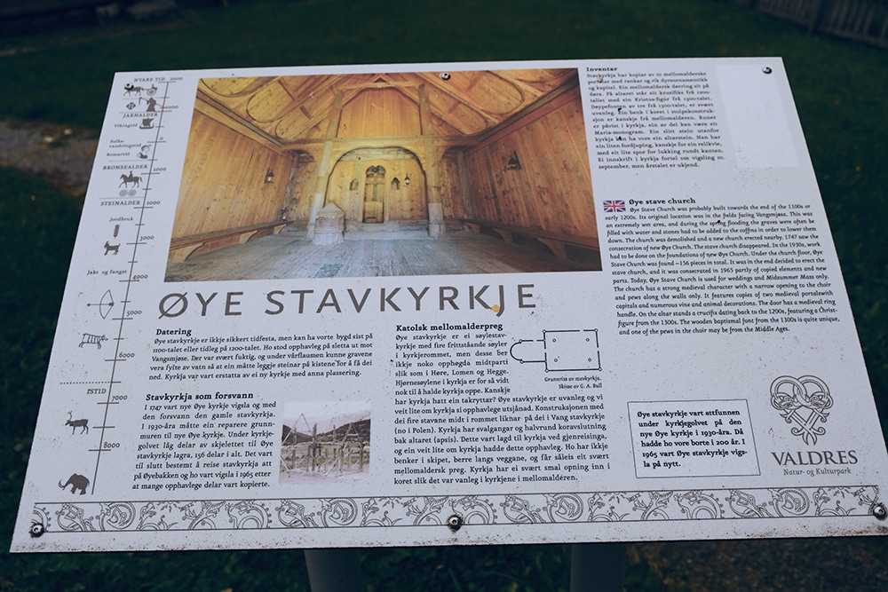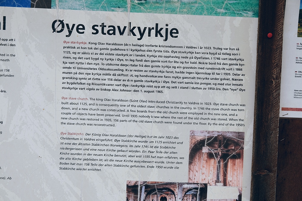 At the time of writing, Øye Stave Church is not open to the public. Instead, the website says to contact their office. You can find the up-to-date information here.