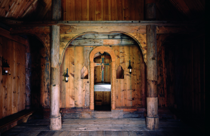 When the new Øye Church was under renovations in 1935, the floor was being replaced. They discovered there were 156 pieces of the old stave church under the floor of the new church. Why they were there is unknown, but architects knew there was enough of the old stave church for it to be rebuilt. So, they did.