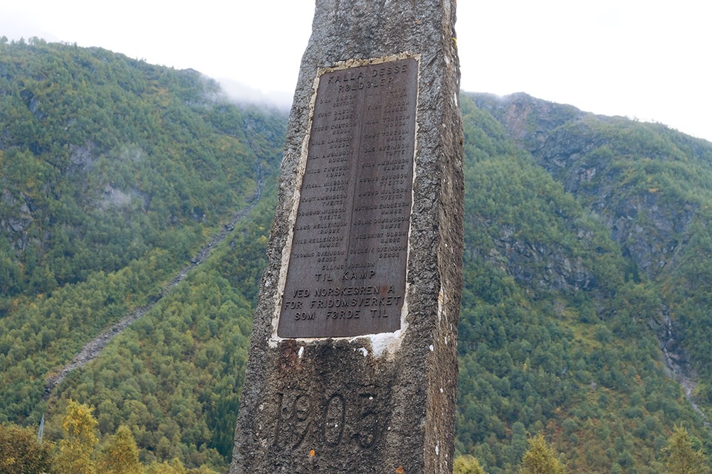 Outside the church is a memorial stone commemorating the people from Røldal who helped in the fight for freedom independence from Sweden in 1905.