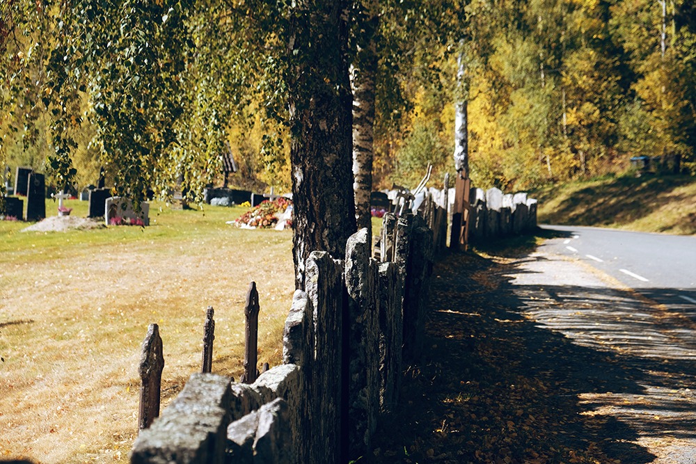When driving on the Fv40 (the main road through the Numedal Valley), you’ll see the turnoff for the church – it’s marked as a brown sign. Note that it’s in Norwegian, so it says “Rollag stavkirke”. The church is 6km off the main highway, and you drive through beautiful farmland. The road you’ll drive on is Rollagsvegen, and you don’t need to go back to this turn-off after visiting the church. I recommend following Rollagsvegen until it rejoins the Fv40. It’s such a beautiful drive.