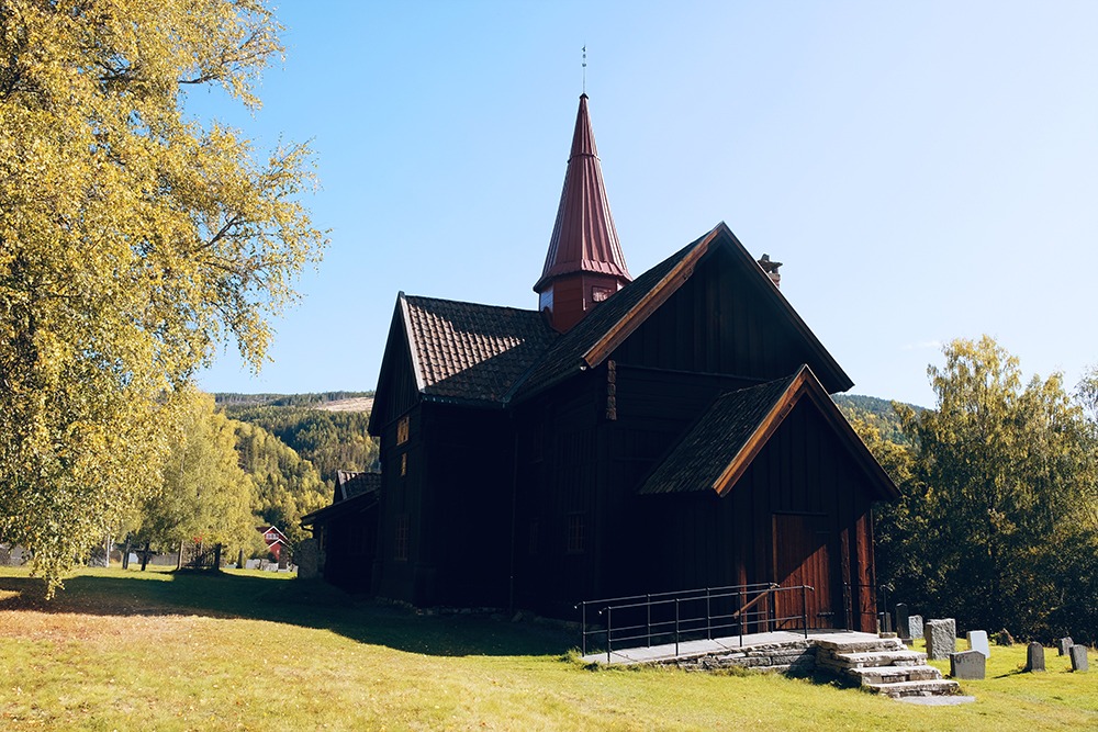 The stave church is just off the highway and north of the village of Rollag. Moreover, while it has undergone many changes since it was built, it’s still well worth visiting.