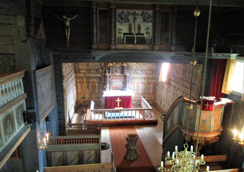 If you are lucky enough to see the inside of the church, you’re in for a treat. Rollag Stave Church is generally regarded as having one of the most beautiful interiors.
