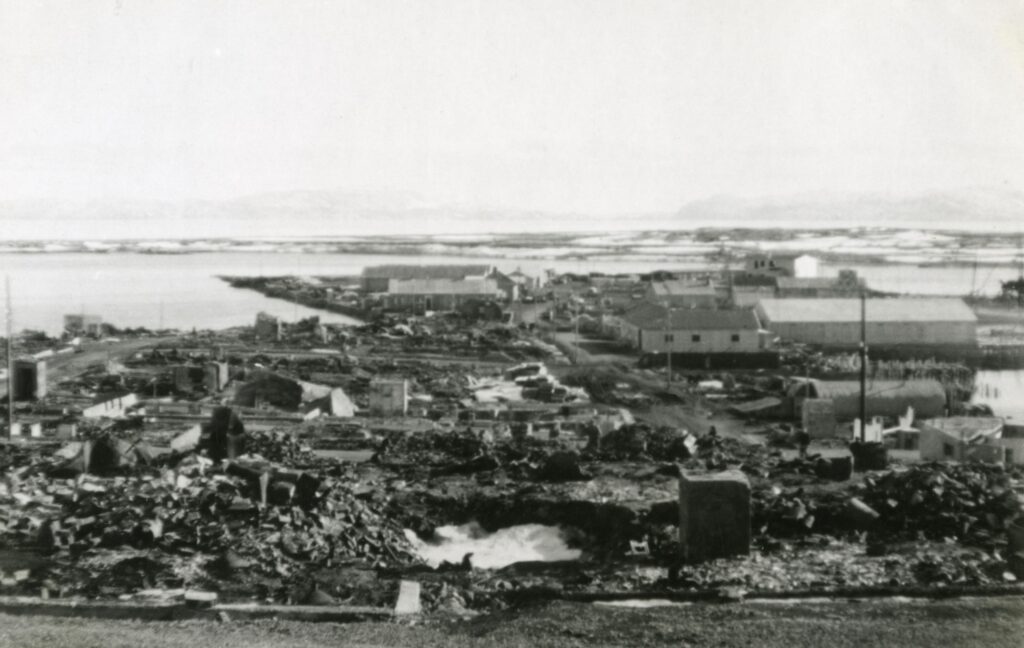Vadsø was completely rebuilt after the war, with modern architecture replacing older wooden buildings.