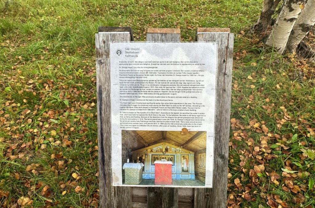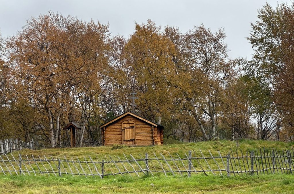 Now we get to Skoltebyen. The area where those five Skolt Sami families settled is now a protected cultural heritage site called Skoltebyen. It came under cultural protection in 2000. The site contains a self-guided walking trail with a number of different monuments, including a Russian Orthodox graveyard, the ruins of a smoke sauna, sixteen sites of traditional turf huts known as gammer and a tiny Russian Orthodox chapel called St. Georg’s Chapel.